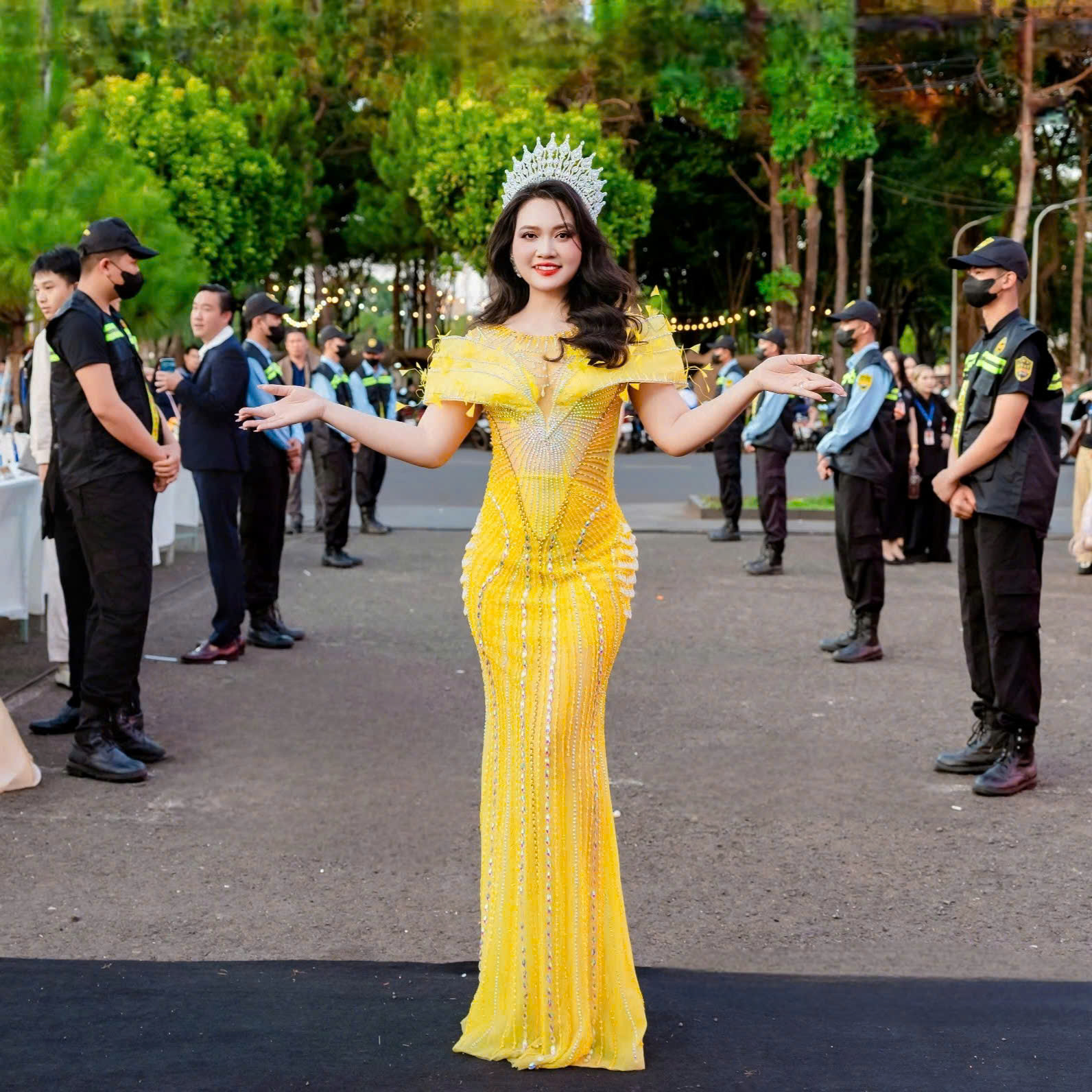 Được biết, để kịp góp mặt tại đêm chung kết, nàng hậu đã bay từ Singapore trở về Việt Nam và nhanh chóng nối chuyến đến Pleiku. Hành trình di chuyển liên tục nhưng vẫn giữ được thần thái rạng rỡ đã phần nào cho thấy sự chuyên nghiệp và tinh thần trách nhiệm của cô đối với cuộc thi.